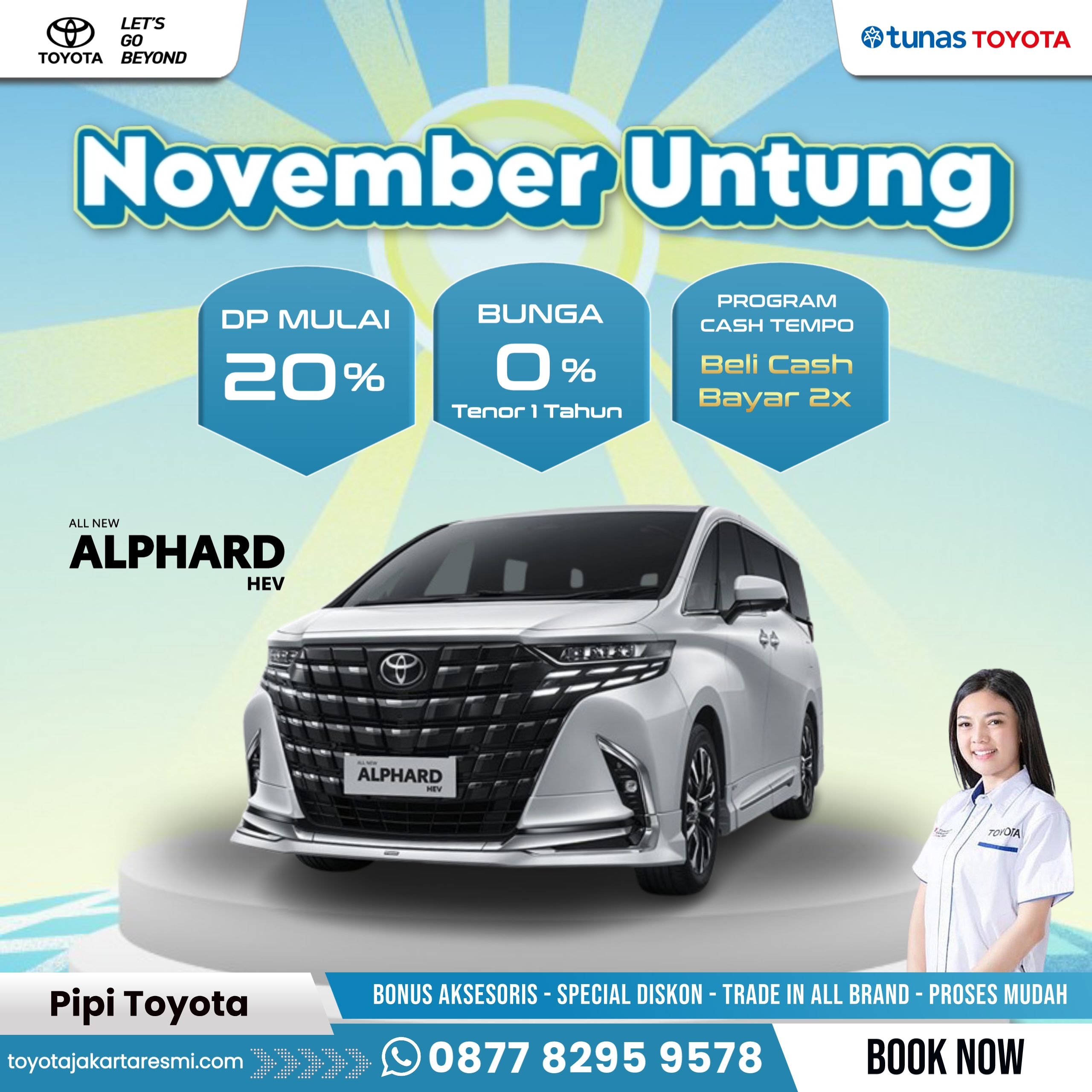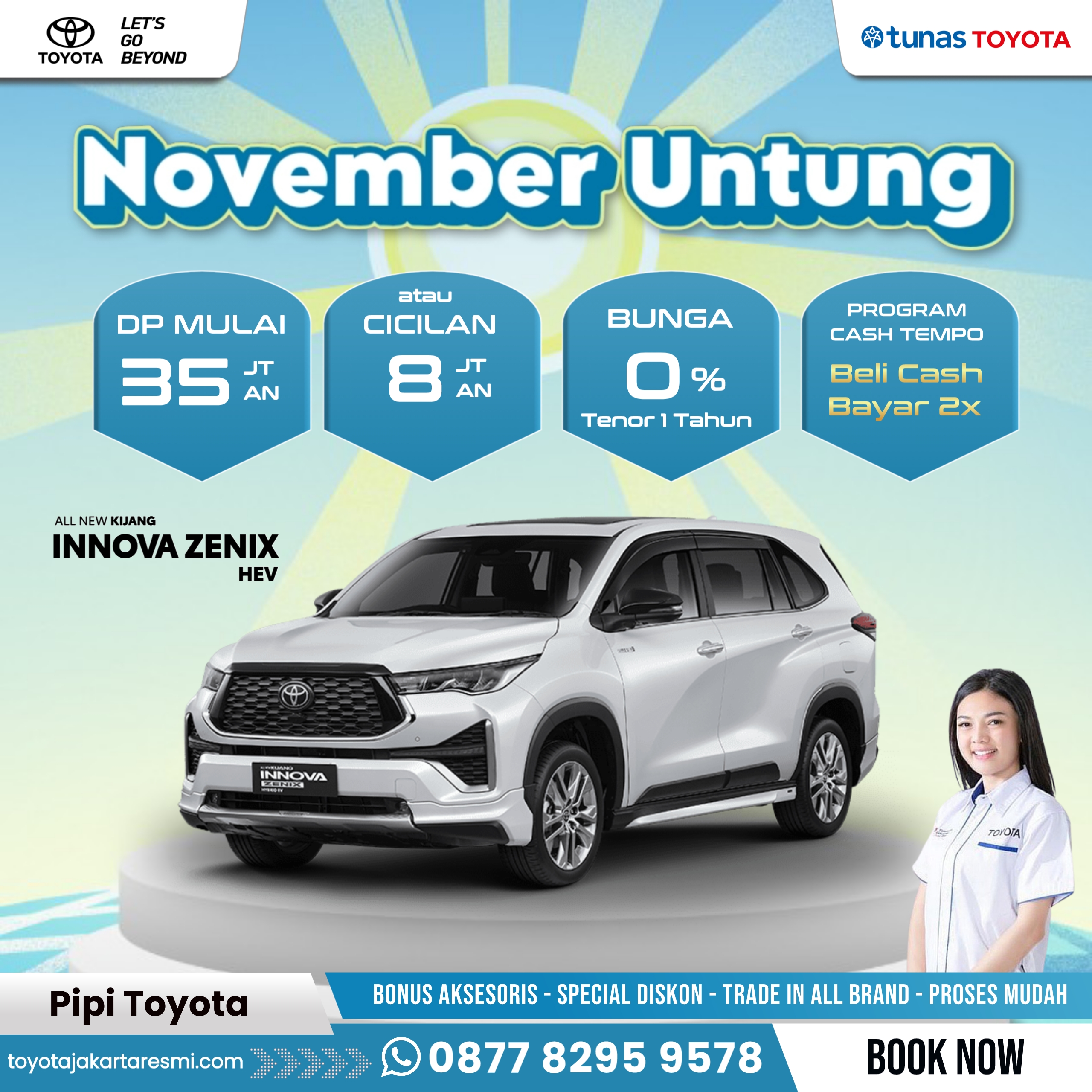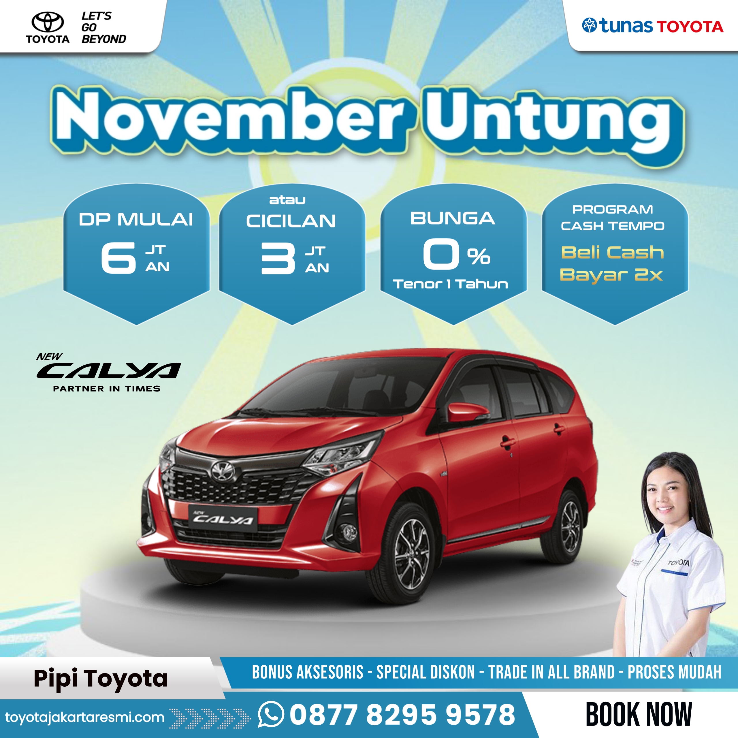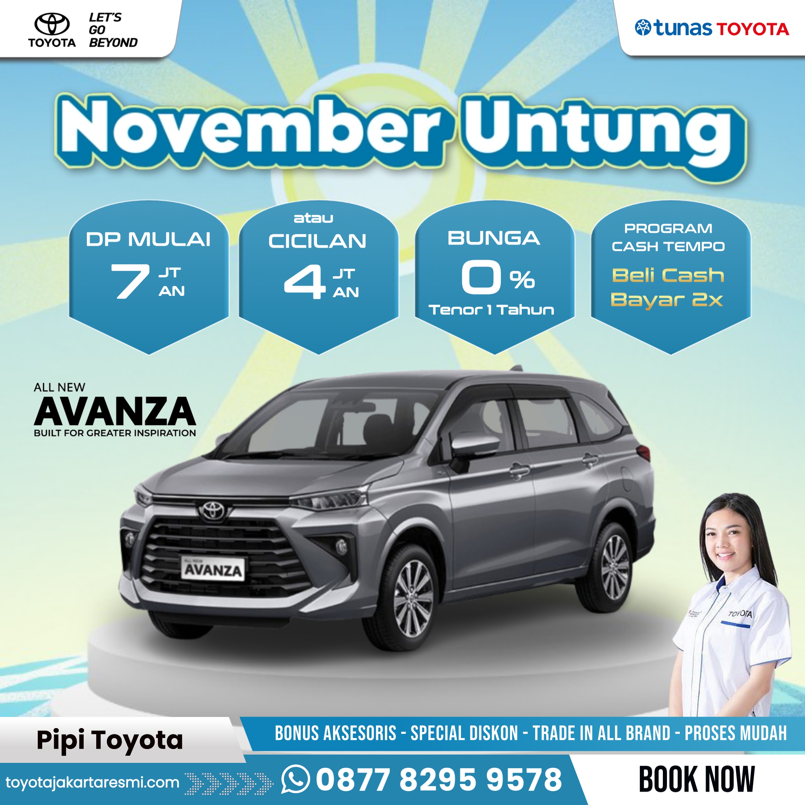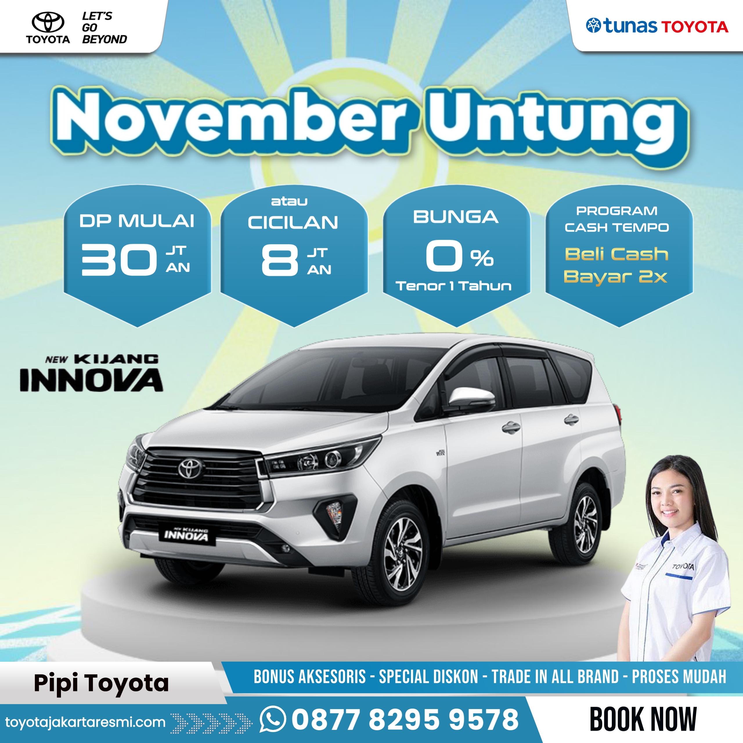 Supaya tetap Instant dan praktis, hubungi Pipi Toyota - Sales Counter untuk mendapatkan info seputar Promo Menarik dan Hadiah Spesial untuk pemesanan kendaraan melalui website ini.